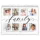Send a beautiful personalised gift to your family that they'll cherish. Special personalised family photo collage calendar to display your own special family photos and memories. The front cover design features a simple 8 photo collage grid design with "Family" designed in a beautiful handwritten black script style. Each photo is framed with a simple gold-coloured frame. Customise with family members' names. Each month features a single full-size image with the month written in elegant black calligraphy displayed slightly over each photo.