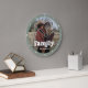 This colourful and stylish clock features your favourite personal family photo, with trendy white typography and a spot to add your name. The border of the clock is a sage green colour.