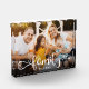 Modern custom photo block with your favourite photo over a trendy swirly script reading FAMILY and your custom name below.