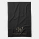 Family Monogram Elegant Script Black Kitchen Tea Towel