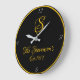 Family Monogram Fancy Script Gold and Black Est.- Large Clock