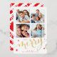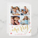 FAMILY MULTI 4 PHOTO modern calligraphy merry red Foil Holiday Card