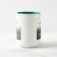 A beautiful, rustic themed two tone large coffee mug with your personalised family name and cabin, lodge or other desired text and it's location. This custom design features artwork of a pine tree forest silhouette in shades of forest and hunter green. Feel free to visit my designer store to see more items and designs like this. Thanks.