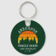 Rustic Pine Trees Summer Retro Sunset Family Name Cabin Forest Green Keychain. Personalise with your family name, location, year or date and more.