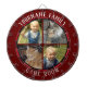 Coloured background with custom name and four photo option in the centre of the board. Other colours available in the shop.