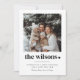 This holiday card design showcases a clean and modern layout with a square photo space for your family's image. Beneath the photo, your family name is elegantly displayed with a small heart detail, adding a touch of warmth. Holiday wishes are beautifully set underneath in two contrasting fonts, creating a stylish yet minimalistic seasonal greeting.