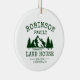 Personalize your family lake house holiday with a beautiful, rustic themed ornament, featuring your family name, lake house location and established date. This unique, custom design features a lake, trees and mountains emblem in stylish forest green. A great addition to your vacation home decor. Feel free to visit my designer store to see more items and designs like this. Thanks.