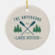 Family Name Lake House Rustic Oars Pine Trees Ceramic Tree Decoration