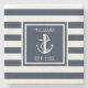 Family Name Nautical Boat Anchor Navy Blue Stripe Stone Coaster