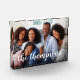 Create a sweet family keepsake with this modern freestanding acrylic photo block. Add your favourite horizontal or landscape orientated photo with your family name overlaid in white handwritten style modern calligraphy lettering.