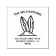 Design a custom self-inking rubber stamp for your family. Choose any colour ink for this stamp that features your name in curved text over surf boards in the sand and your return address below in a simple, modern font. View the collection link on this page or visit our store for more designs!