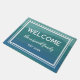 Family Name Teal Watercolor Waves Welcome Doormat