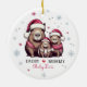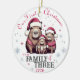 Personalise this cute family of three Capybara in santa hats & snowflakes "Our First Christmas as a Family of Three" round ceramic ornament with the year printed on the front, and "Daddy, Mummy, Personalised Baby Name" on the back side - the perfect custom keepsake gift for new parents to cherish year after year while trimming the Christmas tree together! Happy Holidays from Fig and Lily Studios ♥