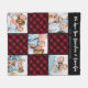 Family Personalised Red Plaid 5 Photo Collage Fleece Blanket
