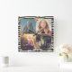 This personalized 4-photo square wall clock has a chic, elegant look with a black-and-white zebra stripe border, gold-colored trim and small roses in the center and behind the numbers 12, 3, 6 and 9.
