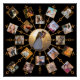 This beautiful, personalised design includes room for 21 of your square, Instagram - style photos. It has a unique circular shape in black with faux (printed) gold glitter frames. 20 of your own photographs circle around one larger photo in the centre. It's perfect for displaying family pictures or memories from your wedding and honeymoon.