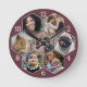 Family Photo Collage 7 Custom Burgundy Red Hexagon Round Clock