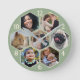 Family Photo Collage 7 Custom Sage Hexagon Flower Round Clock