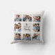 This simple and stylish pillow features your family name in modern, handwritten black script on a chic gray square in the center. Surrounding it is a photo collage grid with room to show off eight of your favorite personal photos for a unique gift your family will love.