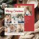 Send warm holiday wishes with this elegant red "Merry Christmas" card featuring a four-photo collage layout. The front includes space for your family name and year, while the back offers room for another photo and a personal message. Classic holiday red paired with modern photo design makes this flat card a timeless way to share love and joy with friends and family. Perfect for Christmas, New Year’s, or general holiday greetings.