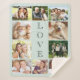 A photo collage keepsake that your family will treasure and enjoy for years. You can personalise with ten family photos. "LOVE" is written vertically down the middle in open typography against a pastel mint green background.