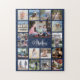 Family Photo Collage Navy Blue Modern Monogrammed Jigsaw Puzzle