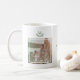 Celebrate togetherness with this personalised mug, featuring your favourite photo displayed in a classic frame with a soft green gradient overlay. A festive wreath with a family monogram adds a seasonal touch above the image, while the bottom includes an editable "family" text that you can customise or remove to suit any occasion. A perfect Christmas gift, keepsake for family gatherings, or personalised tableware for holiday dinners and celebrations.