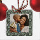 Family Photo Green Snowflake Christmas Ceramic Ornament