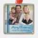 Merry christmas ornament customisable with your own family photo in elegant light blue festive snowflakes and stripes pattern. A stylish christmas gift for family and friends or to decorate your christmas tree or home for the holidays.