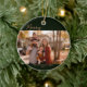 Celebrate the holiday season with this elegant family photo Christmas ornament. Featuring a modern dark green background with stylish script calligraphy that reads Merry Christmas, this design highlights your favourite family photo in the centre. Personalise with your family name and year at the bottom, it’s the perfect way to spread love, joy, and festive greetings to family and friends. Customise the message on the back and add family first names. Make a tradition of having a new photo family ornament every year.