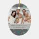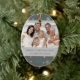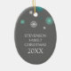 Merry christmas ornament customisable with your own family photo in elegant dark charcoal grey, turquoise teal blue and white festive snowflakes pattern. A stylish christmas gift for family and friends or to decorate your christmas tree or home for the holidays.