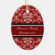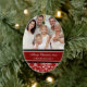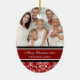 Merry christmas ornament customisable with your own family photo in elegant red, black and white classic floral damask pattern. A stylish christmas gift for family and friends or to decorate your christmas tree or home for the holidays.