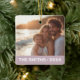 Family photo modern dusty purple name year ceramic ornament