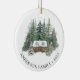 Add your family photo and name to this cute winter themed Christmas keepsake ornament, featuring a watercolor scene with a cosy cabin in the snowy forest on the front, and a photo template on the back. Please contact me through Zazzle Chat if you have need design tweaks or other colorways.