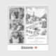 This elegant black-and-white Christmas sticker features a beautifully illustrated winter village, evoking the quiet charm of a storybook scene. Delicate linework captures snow-covered rooftops, pine trees, and a winding stream beneath a stone bridge, all bathed in a soft, vintage glow. A slender church steeple watches over cozy cottages, while distant mountains fade into a dreamy horizon. The design is airy and serene, inviting warmth and nostalgia. Below the illustration, you can personalize the “Merry Christmas” message and sender names. On the left, add three family photos, automatically filtered in black and white to match the theme.