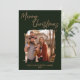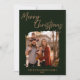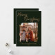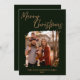 Celebrate the holiday season with this elegant family photo Christmas card. Featuring a modern dark green background with stylish script calligraphy that reads Merry Christmas, this design highlights your favourite family photo in the centre. Personalised with your family name and year at the bottom, it’s the perfect way to spread love, joy, and festive greetings to family and friends. Customise the message on the back and add family first names.