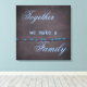 Family Quote Canvas Print--beautiful family quote canvas print with blue birds on a vine accents. "Together we make a family" is the featured family saying with a popular chalkboard background design. Inspirational family quote decor for the home and would make beautiful gifts for Mum or Dad too for Mother's Day or Father's Day.