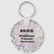 Personalize a keepsake for your family reunion with this keychain featuring an artistic flower as the backdrop. The flower displays colors of pink and green along with a light blue background. The year and your family name stand out in large black font. All text is easily personalized.