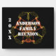 Are you hosting a family reunion dinner or picnic? This plaque will look great on a welcome table or at the head of the buffet line giving your reunion an out of this world feel. This tabletop plaque features a black background and white text along with an artistic, kaleidoscope design in orange and yellow colors. Your family's name and year accompanies this design. All text can easily be personalized to create a welcome sign as unique as your family.