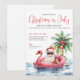 Invite your loved ones to a fun and sunny family reunion with this festive and playful invitation, perfect for celebrating together in the summer. At the bottom, the artwork features a laid-back Santa Claus in sunglasses lounging in a pink flamingo floaty, surrounded by ocean waves and tropical vibes—bringing a cheerful twist to your warm-weather gathering.