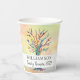 This colourful Family Reunion paper cup is decorated with a multicolored mosaic family tree on a watercolor background.