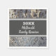 Add a personal touch to your next family reunion dinner or picnic with these mosaic paper napkins. The snakeskin pattern background features small tiles in colours of black, brown, and grey. The banner across the middle of these napkins provides a solid background for the year and your family's name.