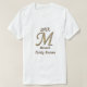 These shirts each feature a large gold and silver letter M monogram. This elegant family initial M is centred on this white t-shirt and is surrounded by a the year and your family's name. Personalise all text quickly and easily to create a family reunion keepsake shirt as unique as your family.