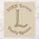 If you are planning a family reunion, this wine label sticker offers an inexpensive way to personalise your event. The beautiful gold and silver letter L monogram is centred and surrounded by your personalised reunion information. Quickly and easily add the year and your family's name