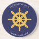 Family Reunion & Golden Ship Wheel on Navy Blue Coaster