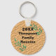 Create an inexpensive keepsake for your next family reunion with these unique keychains. The year and your family's name appears in the center of this round keychain. The text is surrounded by tree branches with bright green leaves. The brown background resembles a basket weave or cracked earth pattern. All text can easily be personalized for your large family gathering.