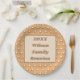 Are you looking for a unique way to personalise your family reunion meal or picnic? These paper plates offer both an eye-catching and inexpensive way to personalise your next family gathering. The pattern on the plates feature an elegant gold polka dot pattern against a dark peach background. The centre features a brown outlined rectangle with pale peach middle providing the background for your announcement, family name, and year.