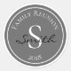 Keepsake family reunion gift featuring a round monogram badge in grey, black, and white. Can be personalised with the font and text of your choice.