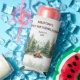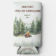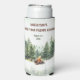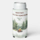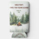 Seltzer Can Cooler featuring pine wood forest and campfire. Everything is placed on a the white and light green background. Perfect for your next family reunion, birthday or any nature-themed event. Easily personalise all the text or leave some blank - Kate Eden Art.