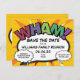 Personalise with your names and details to announce the date of your special family reunion or party. A cool, trendy and fun design that puts, even more, wham, zap, pow into your special day. Designed by ComicBookPop© at www.zazzle.com/comicbookpop*